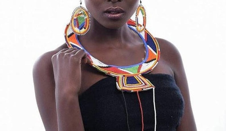A set of 4 traditional multicolored maasai jewellery, beaded and very colourful.